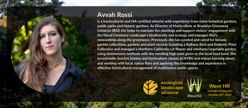 This year’s Ecological Plant Conference at Wave Hill on Friday, October 24 will feature four incredible speakers, each with a unique perspective and stories to share about working with plants. The Ecological Plant Conference is always a deep dive into the world of plants in the built landscape and this year's program is sure to inspire you to learn more about the plants around you.